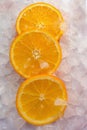 Three slices of fresh yellow juicy lemons, close-up on white background