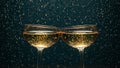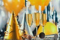 Champagne Cork and party ribbons with the stem of a glass in view
