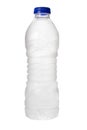 Iced water dispensed into a tumbler from a glass bottle with a resealable cap, view from above on a wooden table in a healthy drink and diet concept