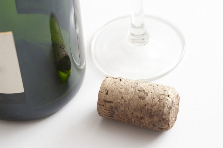 Wine cork alongside a bottle and glass by freefoodphotos.com is licensed under a Creative Commons Attribution 3.0 Unported License.