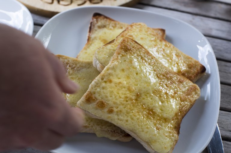 snack of melted cheese toast
