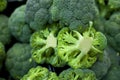 Close up of fresh green broccoli florets cut into small portions ready for cooking as an accompaniment to a healthy meal