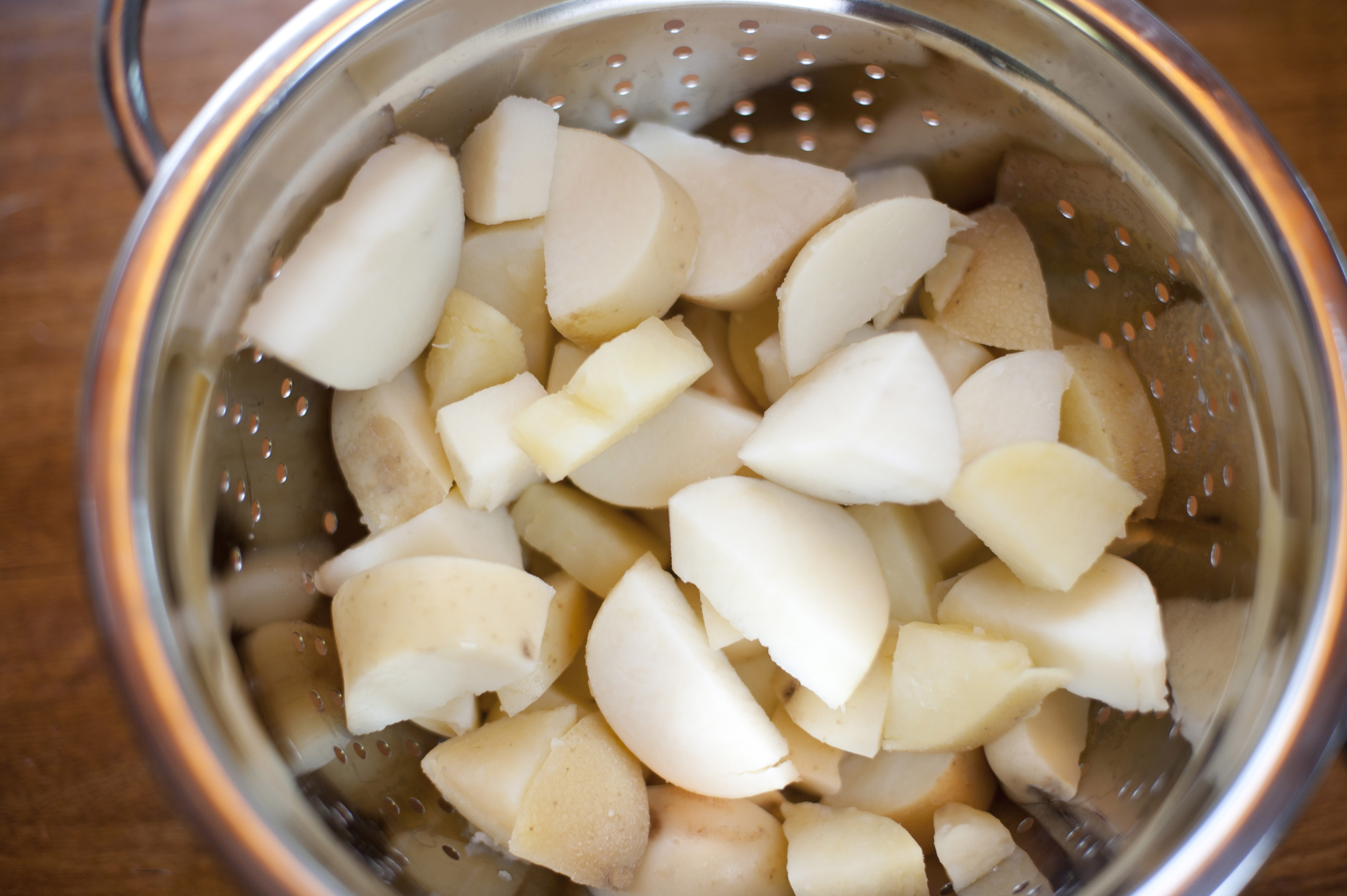 Chopped potatoes in colander by freefoodphotos.com is licensed under a Creative Commons Attribution 3.0 Unported License.
