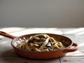 Serving tagliatelle noodles