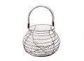 Farm fresh hens eggs in a wicker basket for sale at a farmers market
