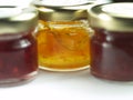 Slice of breakfast toast spread with butter and topped with marmalade or preserve