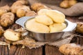 Peeled potatoes standing in a pot water ready for cooking in a close up high angle view