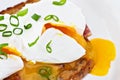 Two eggs being poached in boiling water