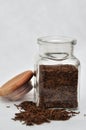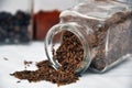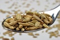 Close up of whole caraway seeds piled on bench
