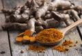 Fresh turmeric cut with a knife