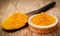 A spoon and a jar of ground turmeric