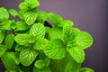 Close up on fresh green aromatic mint leaves for garnish and cooking on a white background