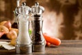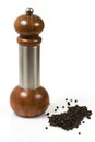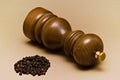 Wooden pepper mill with dried black peppercorns