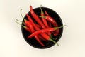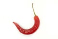 Close up on the sliced fresh pod of a red hot chill pepper to be used as a pungent flavouring in cooking