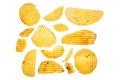 Background of scattered crinkle cut crisps