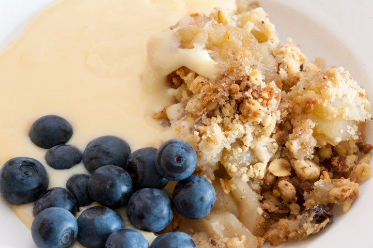 Apple crumble with blackcurrants and custard by freefoodphotos.com is licensed under a Creative Commons Attribution 3.0 Unported License.
