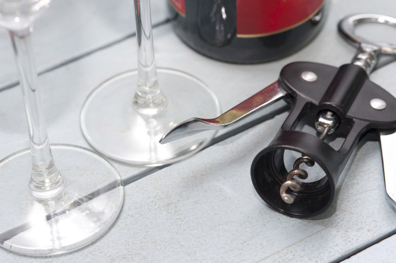 Corkscrew bottle opener alongside wineglasses by freefoodphotos.com is licensed under a Creative Commons Attribution 3.0 Unported License.