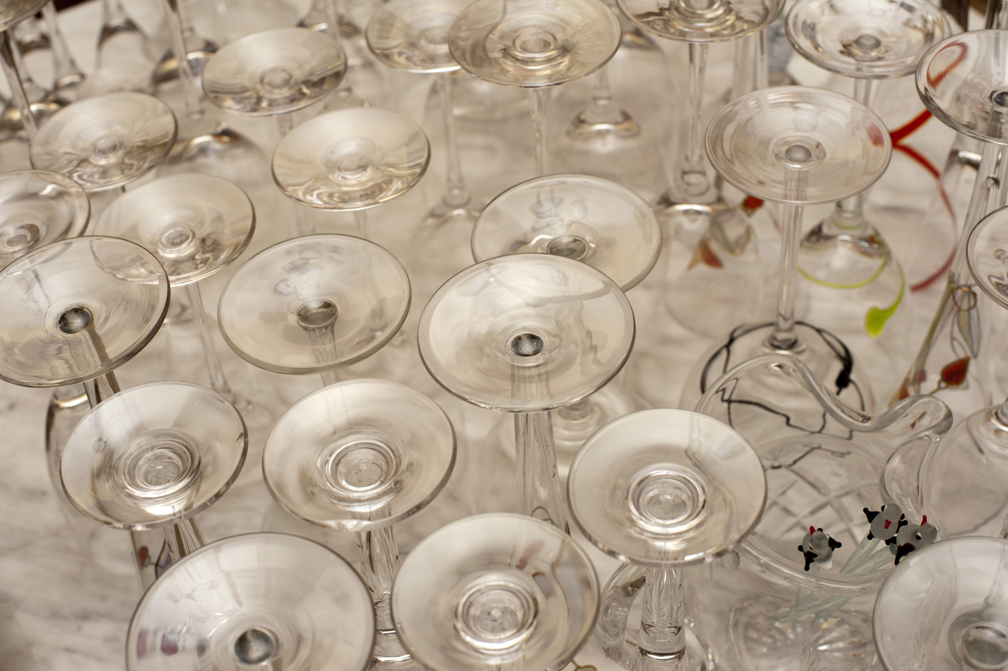 Variety of upended clean glassware