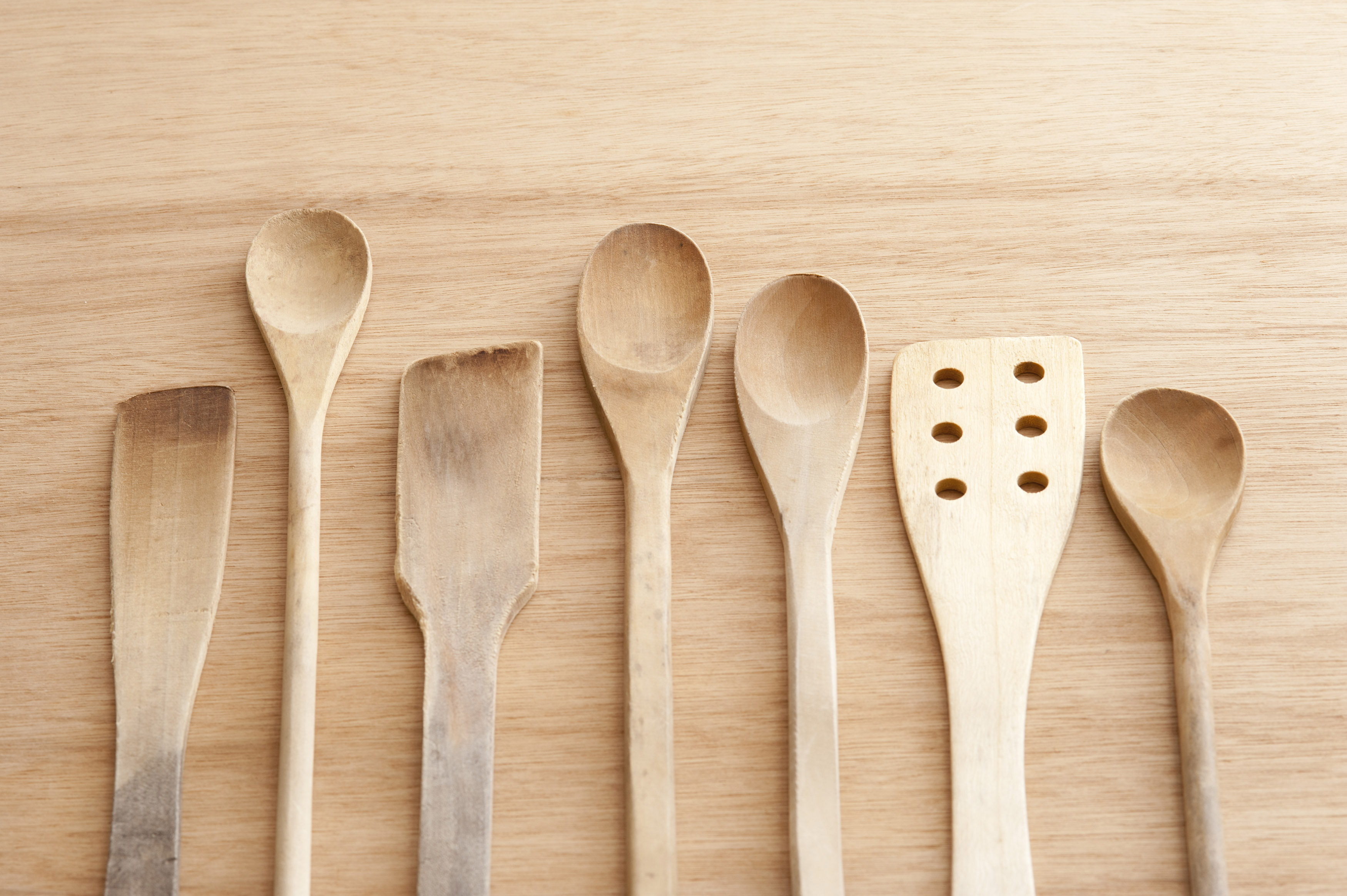 Set of plain wooden kitchen cooking utensils by freefoodphotos.com is licensed under a Creative Commons Attribution 3.0 Unported License.