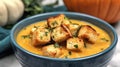 Crisp golden croutons in onion soup
