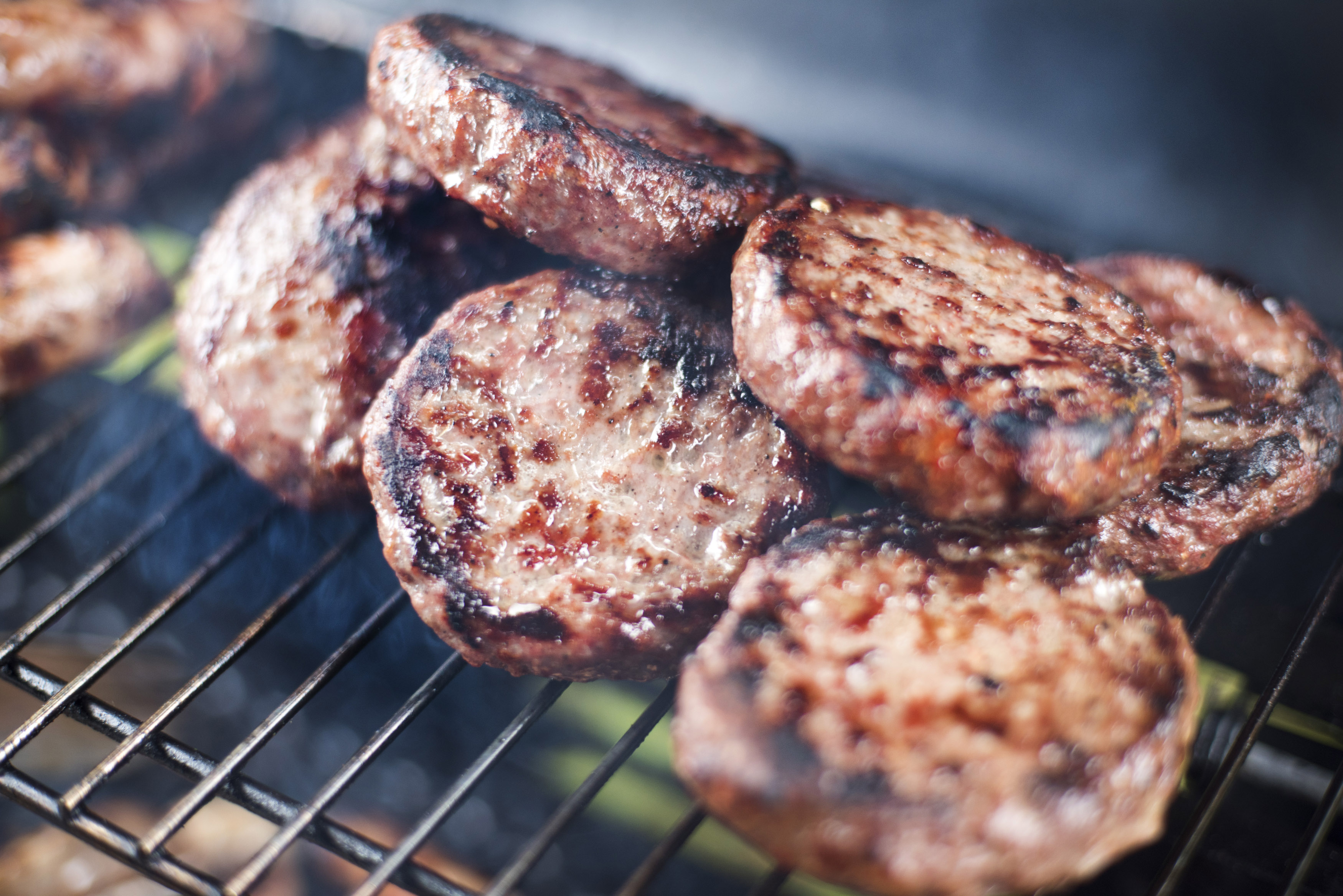 Grilled beef burger patties on a BBQ