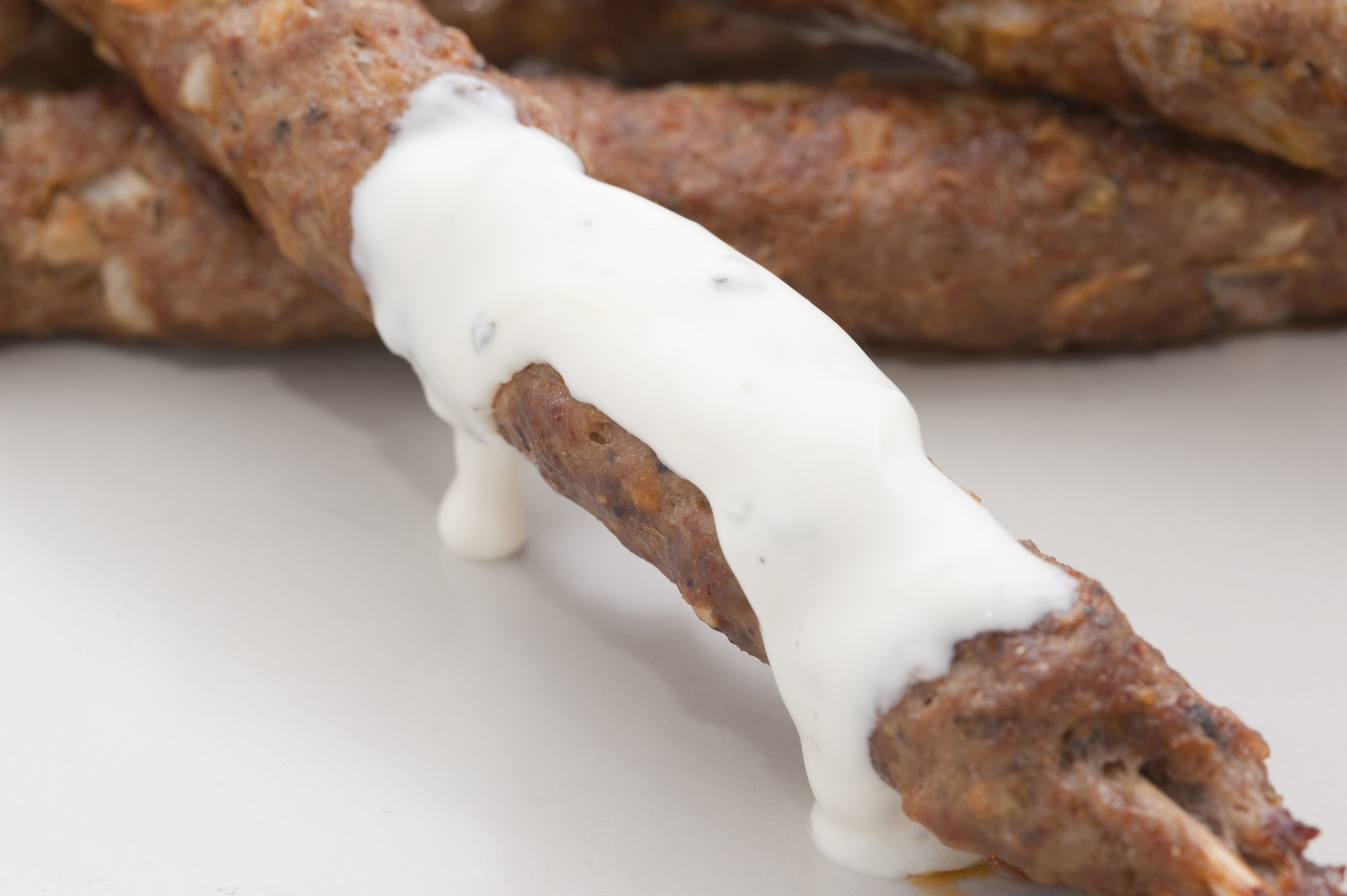Spicy kofta kebabs made from minced lamb, spices and herbs and served with a sauce