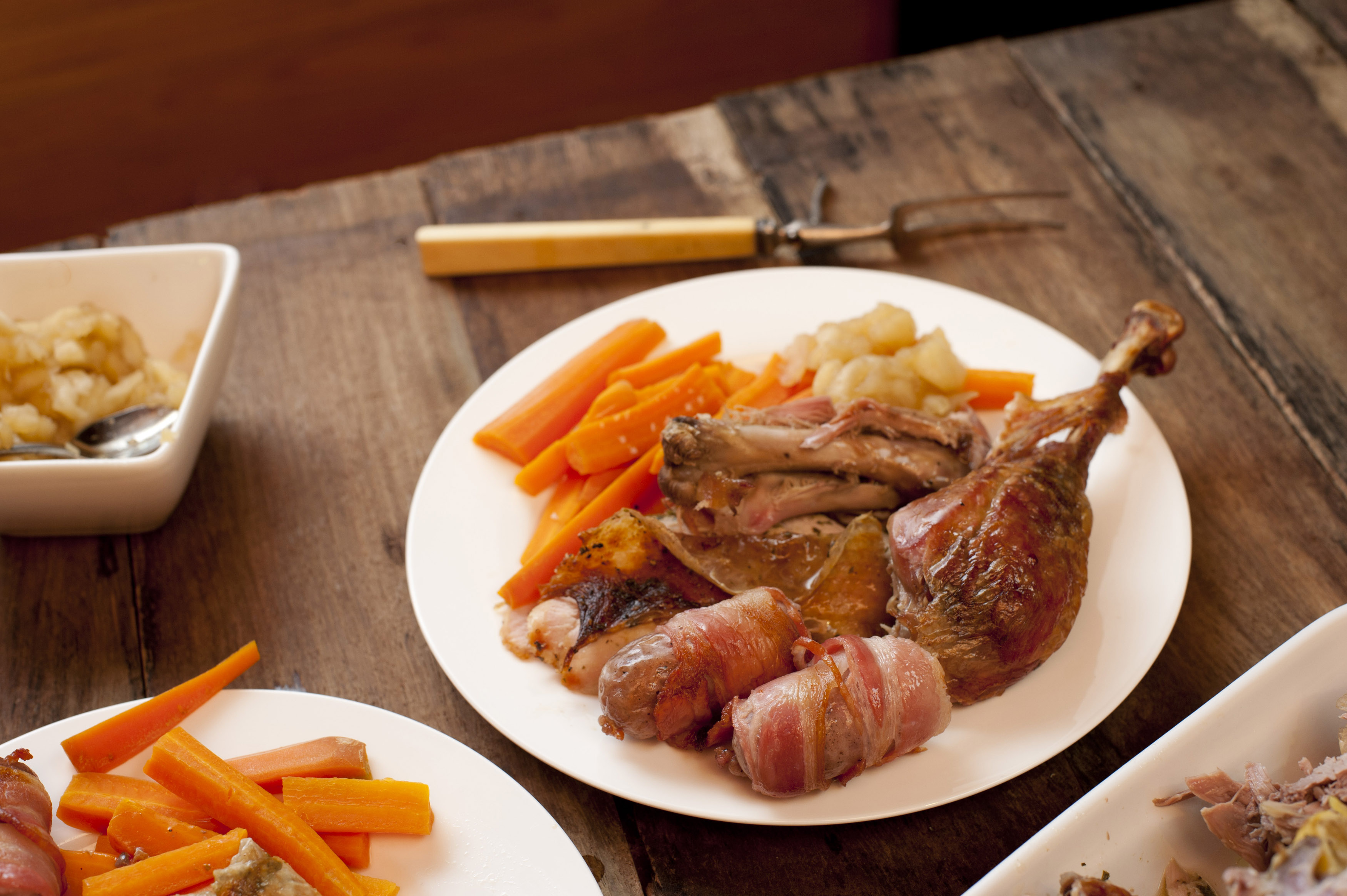 A rustic dinner table setting with roast turkey by freefoodphotos.com is licensed under a Creative Commons Attribution 3.0 Unported License.