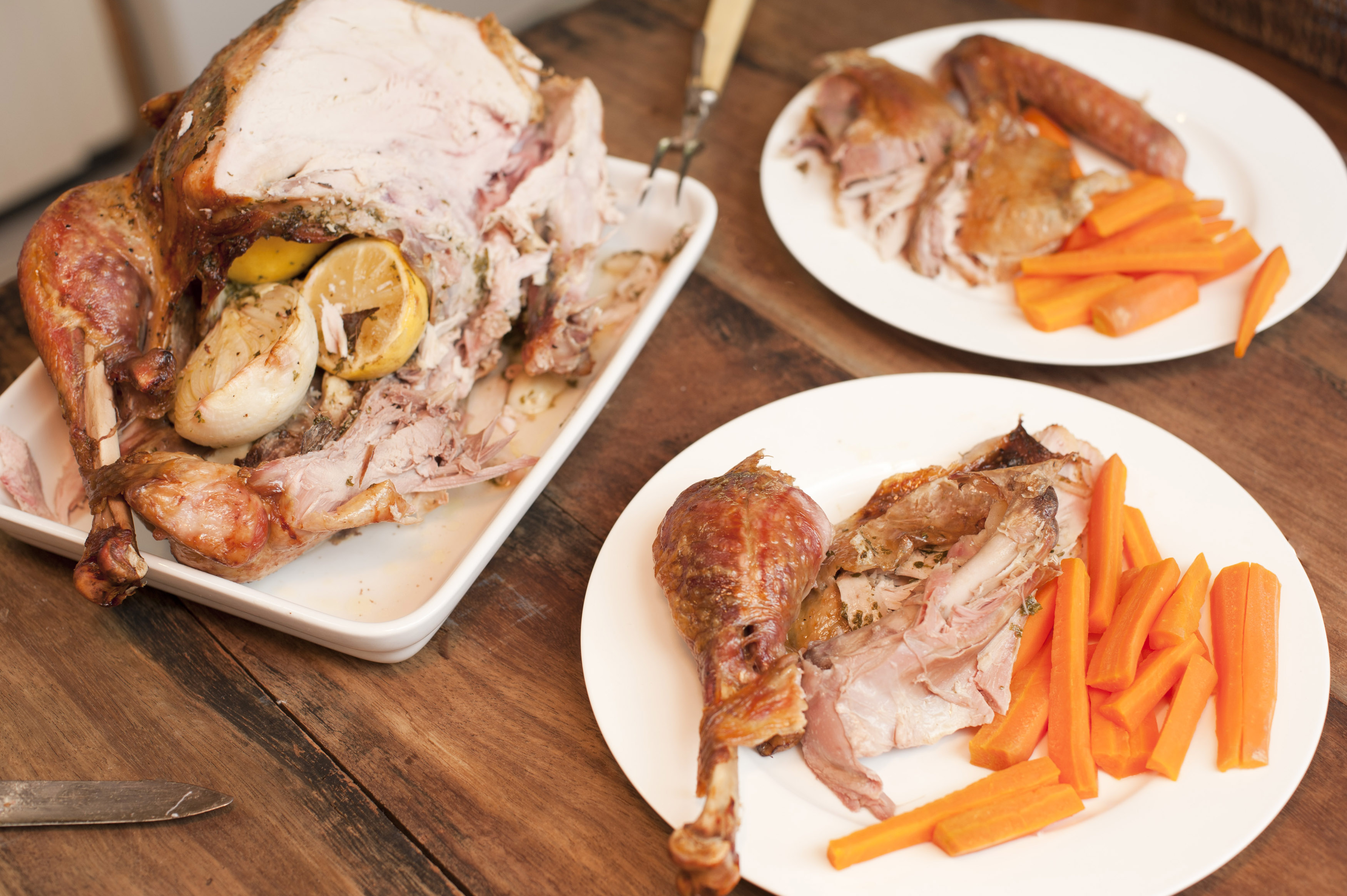 Tasted carved roast turkey served on plates by freefoodphotos.com is licensed under a Creative Commons Attribution 3.0 Unported License.