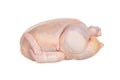 Uncooked seasoned chicken with dollops of butter on top lying in a roasting pan ready to go into the oven for roasting