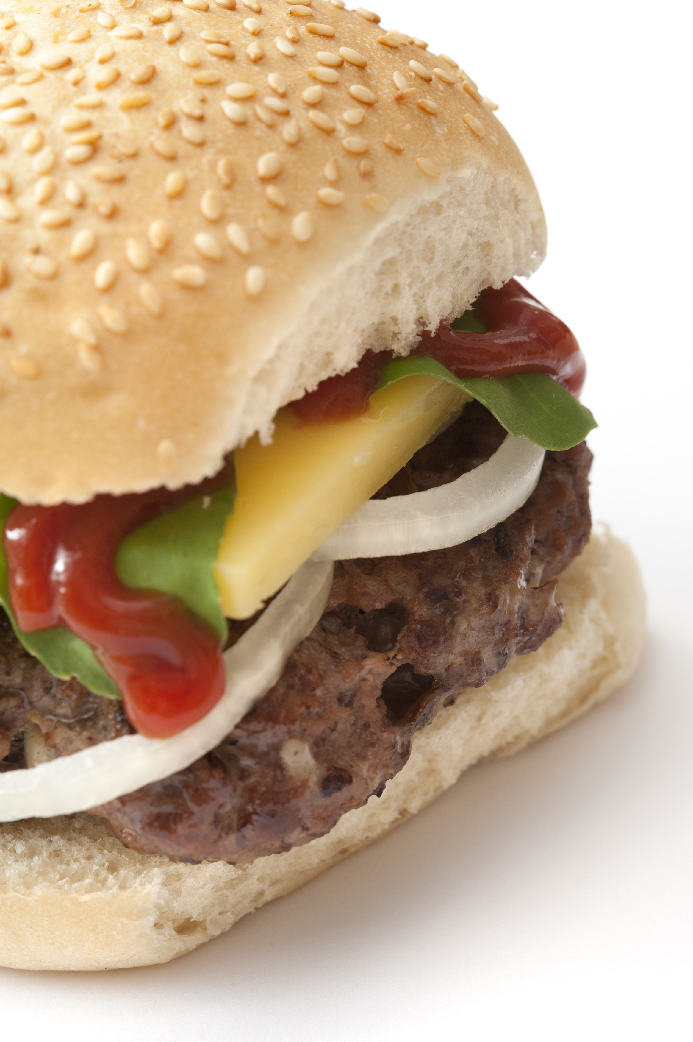 Cropped view of hamburger with sesame bun by freefoodphotos.com is licensed under a Creative Commons Attribution 3.0 Unported License.