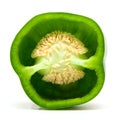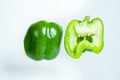 Halved and sliced fresh green sweet bell pepper or capsicum for use as an ingredient in a salad or for cooking
